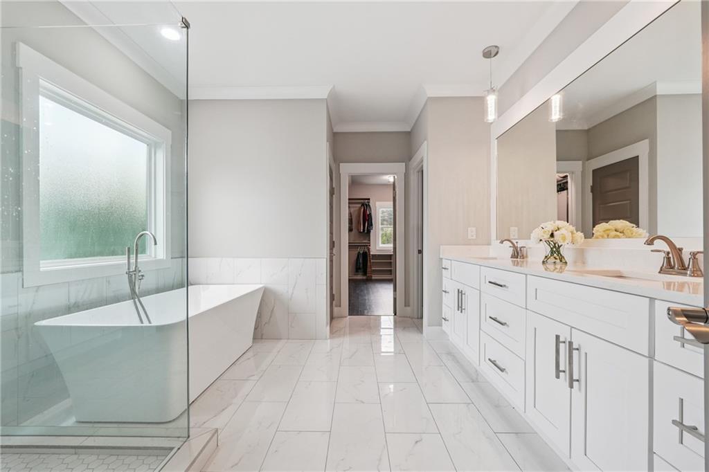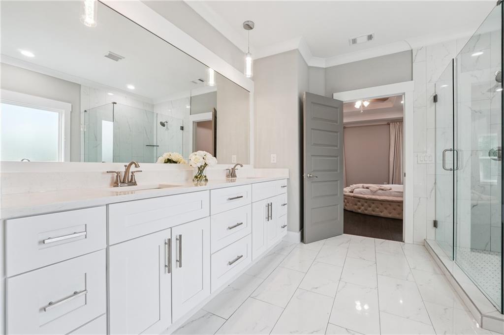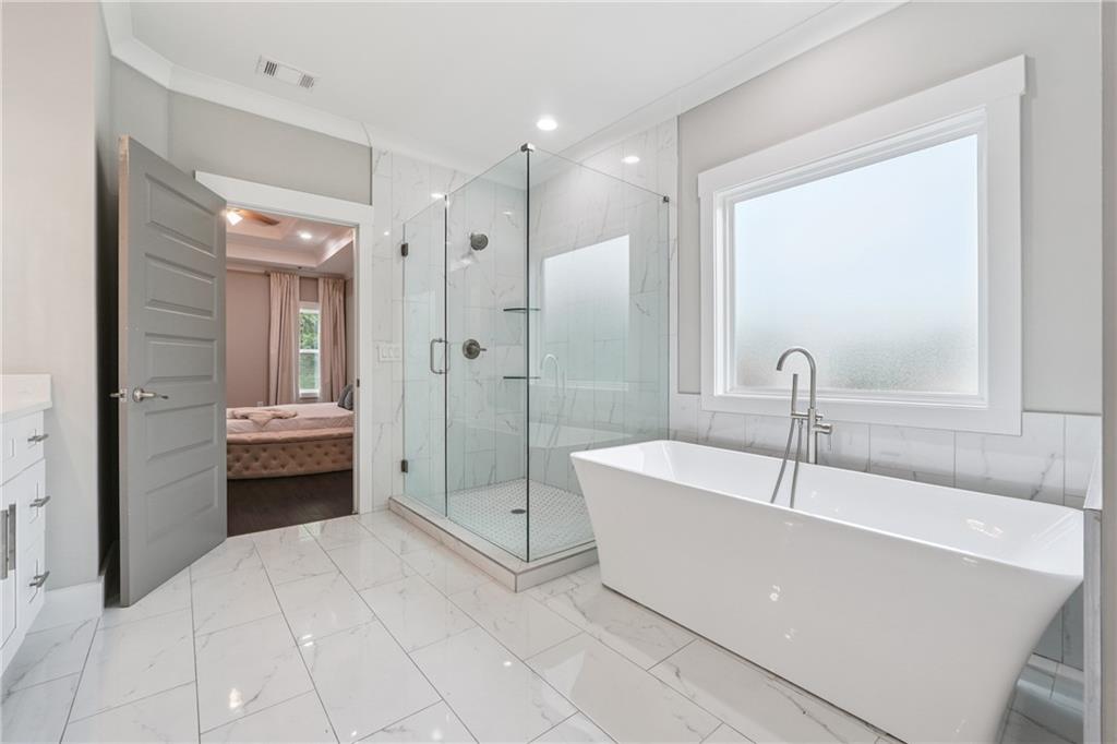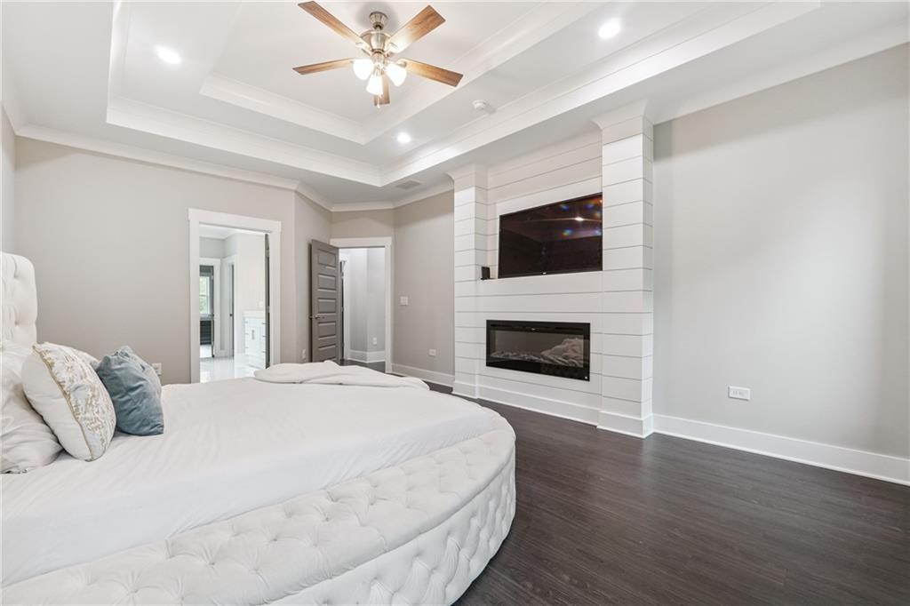 The primary suite offers a true retreat, complete with a cozy fireplace, spa-inspired bath featuring a soaking tub and oversized shower, and an expansive walk-in closet that will impress even the most discerning buyer.
