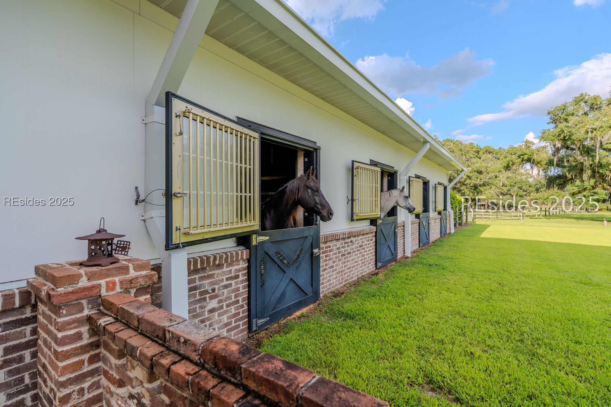 Escape to Ridgeland Ranch, a breathtaking 26.36-acre equestrian estate where Lowcountry elegance meets world-class horse facilities. Inspired by the timeless sophistication of Palmetto Bluff, this private sanctuary offers the perfect blend of luxury living and equestrian excellence.The custom-built Lowcountry home, crafted by renowned builder Mike Tuten, showcases exquisite attention to detail with reclaimed materials throughout. Soaring vaulted ceilings with exposed beams frame the magnificent brick fireplace, while hickory floors and custom millwork create an atmosphere of refined warmth. The gourmet kitchen features polished black granite countertops, a Sub-Zero refrigerator, and a stunning six-oven AGA range in navy blue.The crown jewel is the state-of-the-art Morton Barn with its impressive 200' x 100' covered arena, complete with professional footing, LED lighting, and sound system. Eight custom 12' x 12' stalls, climate-controlled tack and feed rooms, and a luxurious 2-bedroom apartment above provide everything the serious equestrian demands.Entertainment abounds with an infinity-edge pool cascading into the private pond, a recreation suite featuring a bar, pool table, and authentic Boston firehouse pole, plus a newly resurfaced pickleball court and outdoor kitchen. The handmade brick courtyard with fire pit offers the perfect gathering space.Located minutes from I-95, Ridgeland Ranch provides unparalleled access to major equestrian circuits including Wellington, Ocala, Tryon, Aiken, and Lexington, while offering the privacy and natural beauty near the acclaimed ACE Basin. This is more than a propertyit's a lifestyle, a legacy, and a dream realized.
