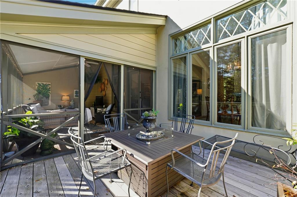 Bathed in natural light, the open-concept floor plan exudes warmth and sophistication. Designer finishes, elevated textures, and thoughtfully selected details create an atmosphere that feels both polished and inviting. The gourmet kitchen is a culinary showpiece, appointed with top-tier appliances, custom cabinetry, and premium surfaces--seamlessly flowing into the fireside family room, ideal for intimate evenings or gracious entertaining. Just beyond, a screened porch and expansive deck overlook a serene, private courtyard, offering a tranquil extension of the living space.