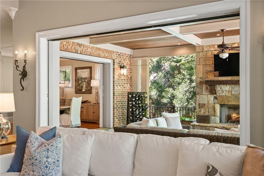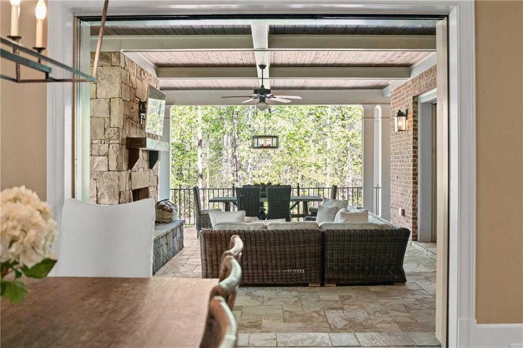 The wraparound covered porch is designed for year-round enjoyment, complete w/a stone fireplace, multiple seating and dining areas, and tranquil wooded views--creating the perfect backdrop for relaxing or entertaining.