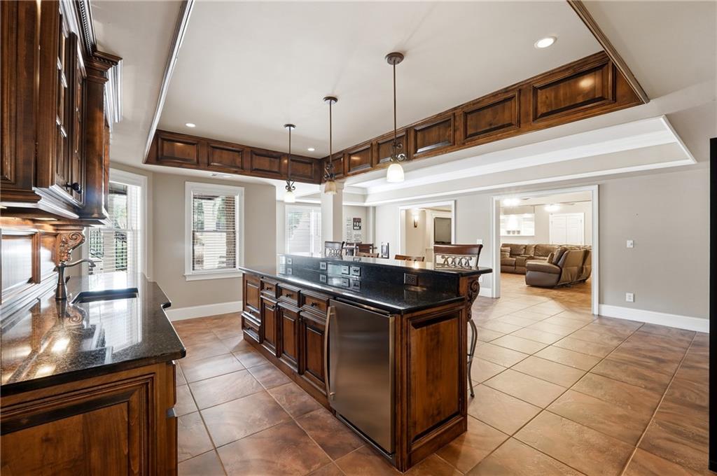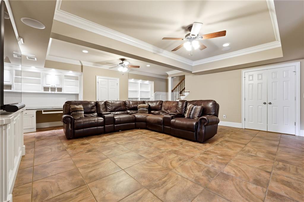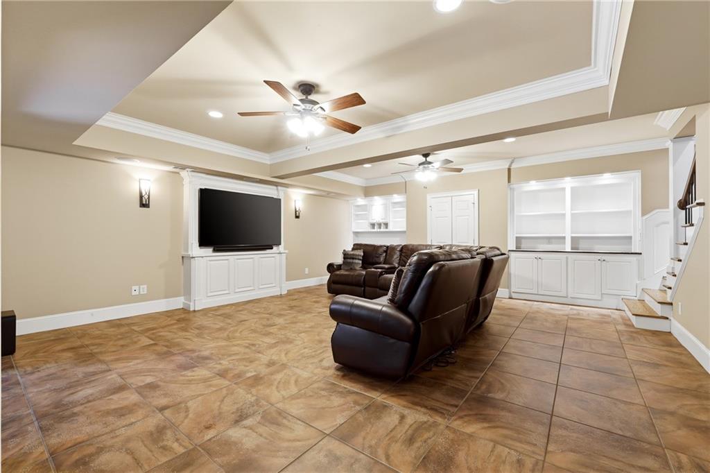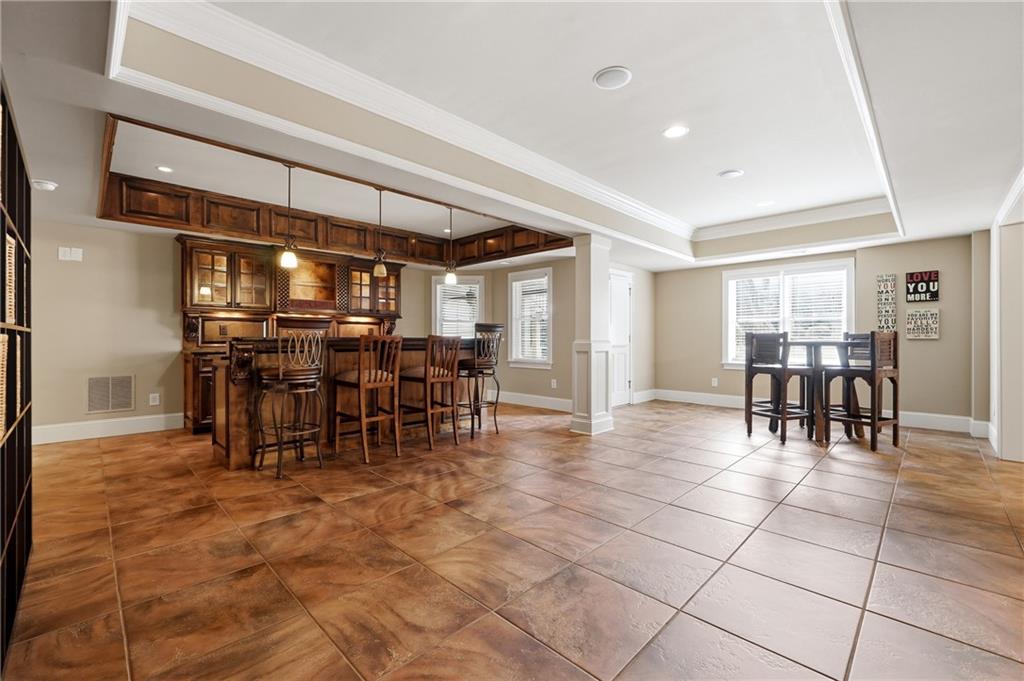 The terrace level is designed for ultimate relaxation and entertainment. This beautifully finished space features a dedicated media room perfect for movie nights and game days, along with a custom-built bar complete with sleek countertops and stylish cabinetry. Enhanced with elegant lighting and premium tile flooring, the lower level offers a warm yet sophisticated environment ideal for hosting or unwinding.