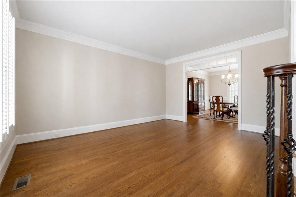 The main level also offers a private home office or optional sixth bedroom, a stylish powder room, and elegant formal living and dining rooms perfect for hosting gatherings.