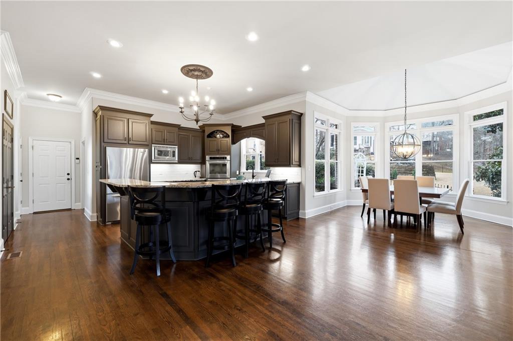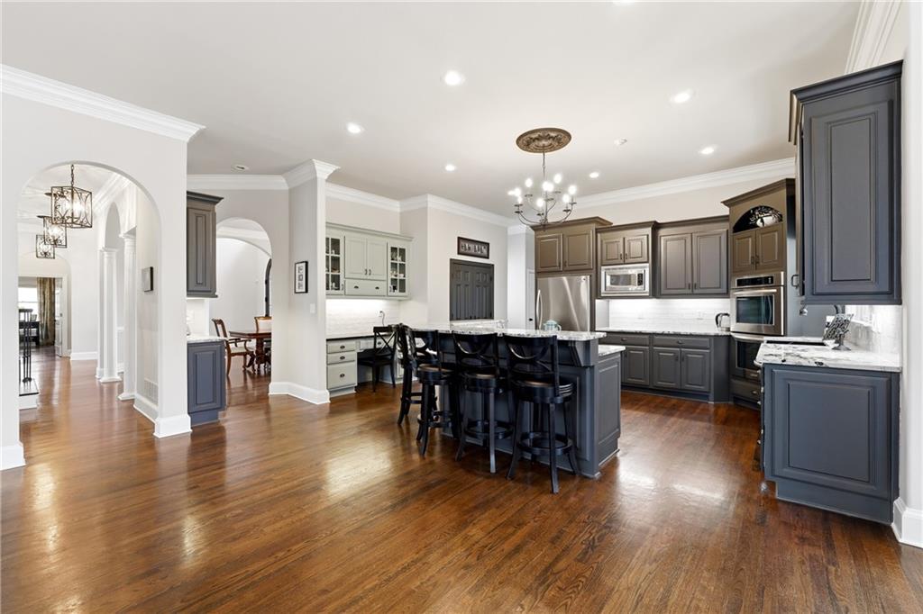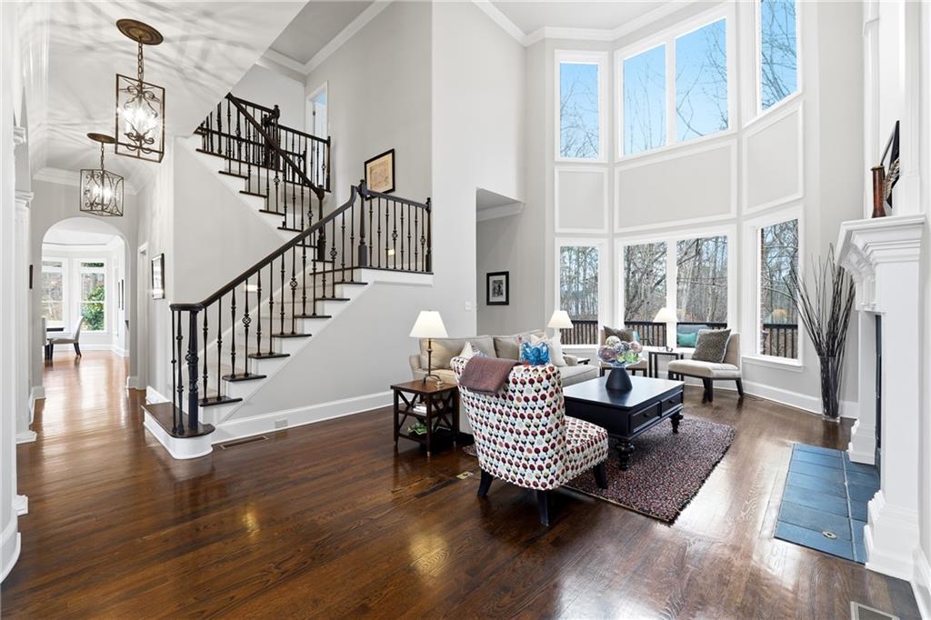 Exquisite Executive Estate in The Falls of Autrey Mill. Introducing an extraordinary executive residence in the prestigious Falls of Autrey Mill, offering almost 10,000 square feet of refined living space in one of the area's most sought-after communities. Perfectly positioned in a private cul-de-sac and backing to the serene Autrey Mill Nature Preserve, this four-sided brick estate is a rare blend of luxury, privacy, and natural beauty. Designed for both grand entertaining and intimate everyday living, this six-bedroom home features a luxurious primary suite on the main level complete with cathedral ceilings and a fireside sitting room overlooking the preserve -- a true retreat. The heart of the home showcases a beautifully updated kitchen with adjoining keeping room, butler's pantry, mudroom, and a dedicated friends-and-family entrance for effortless daily living. Thoughtful architectural details and elevated finishes are found throughout. The terrace level is exceptional, boasting 12-foot ceilings and designed for ultimate entertaining. Enjoy a spacious game room, separate bar and pub area, media room with fireplace, private bedroom, and full bath -- ideal for guests or multi-generational living. Outdoor living is equally impressive with maintenance-free spaces, a private fire pit, and a putting green -- all surrounded by tranquil wooded views.